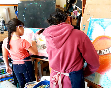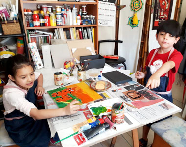 El taller está orientado a brindar un mayor conocimiento y profundidad del Lenguaje Plástico (línea, forma, color, textura, espacio, etc.) a través del aprendizaje de variadas técnicas artísticas (Dibujo, Pintura, Collage, etc.) y la exploración y manipulación de diferentes materiales, soportes y formatos. Observar, imaginar, explorar, descubrir y apreciar para lograr la EXPRESIÓN Y COMUNICACIÓN DE LO QUE LOS NIÑOS PIENSAN, SIENTEN, E IMAGINAN.