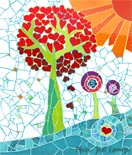 Taller apto para niños, jóvenes y adultos. Venta de mosaicos decorativos, utilitarios y encargos.