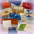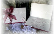 Partes y recuerdos de matrimonio confeccionados a mano, creaciones originales y adaptadas a los requerimientos de los novios en cuanto al color del papel y las cintas.