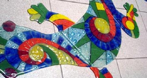 Vitreaux, vitrofusión, vitromosaico, distintas técnicas para distintos objetos decorativos y funcionales, como lámparas, platos, ceniceros, cuadros, relojes, móviles, colgantes, collares, anillos, cajas con aplicación en vidrio y otros.